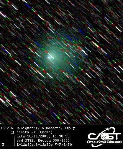 Комета Энке в настоящее время имеет период 3.3 года, но из-за небольшого абсолютного блеска кометы и особенностей орбиты (перигелийное расстояние 0.34а.е.), далеко не каждый ее видел. За время моей практики кометных наблюдений было 4 ее появления, но лишь в двух из них я смог посмотреть эту гостью - это было в 2000 и 2003гг.