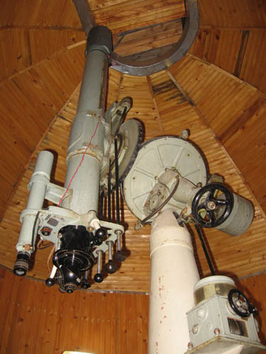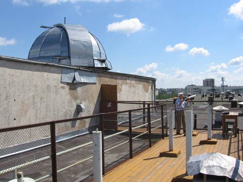 Обсерватория была основана в 1961г. В тогда еще старом здании педагогического института, которое находилось на улице Ленина. Основателем обсерватории был Цветков Михаил Павлович, кто долгое время и был ее руководителем. История умалчивает, какими правдами и неправдами удалось в то время приобрести астрономические приборы. Но оснащение обсерватории по тогдашним меркам было довольно серьезное. Основной телескоп обсерватории, который был установлен стационарно – АВР-3. Рефрактор с диаметром объектива 13см и фокусным расстоянием 1950мм, массивный инструмент на немецкой монтировке с механическим часовым приводом на маятниковой стабилизации. Общий вес инструмента составляет 623кг! Этот телескоп позволяет проводить как визуальные наблюдения, так и фотографические, есть специальная кассетная часть под фотопластинки 9х12см, а так же экран для наблюдений за Солнцем. Помимо этого в обсерватории было несколько выносных инструментов: 9 Школьных рефракторов с объективами 6см и 8см, 6 Школьных менисковых телескопов системы Максутова, 12 биноклей и даже 3 теодолита. Обсерватория так же имела свой планетарий.